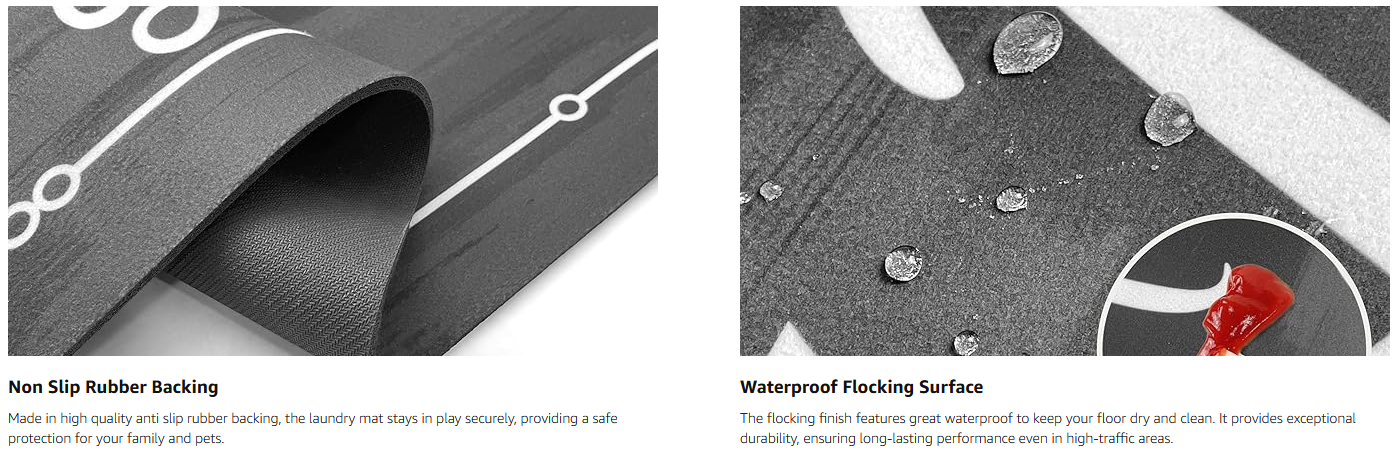 Waterproof and Stain Resistant:This waterproof laundry room floor mat is designed to repel water and resist stains, keeping your floor dry and clean; It provides exceptional durability, ensuring long-lasting performance even in high-traffic areas.
