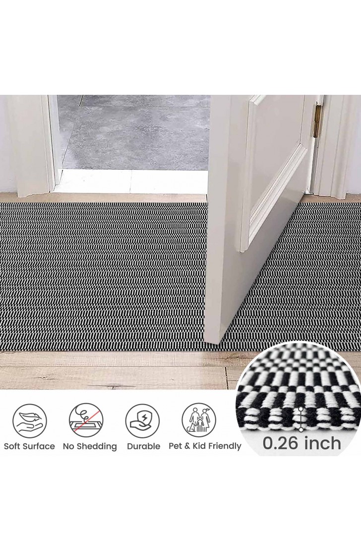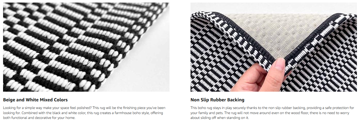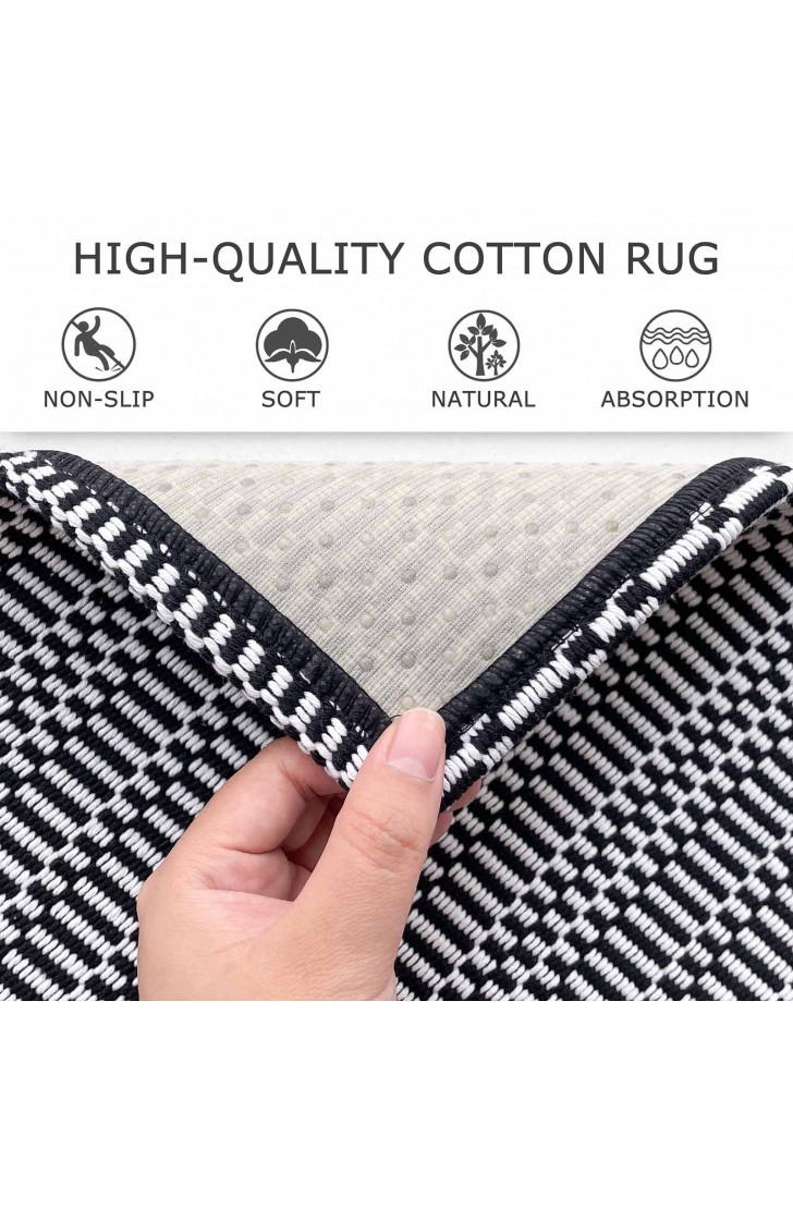 【Versatile Boho Rugs】 This Boho washable area rug has a beautiful bohon pattern, not printed. It is not a solid dark gray color but has a chic geometric pattern with a classic braided texture that'll bring a touch of farmhouse decor to your home. Get ready to elevate your hallway, Kitchen, bathroom, front door, laundry room, bedroom and living room with this boho beauty!