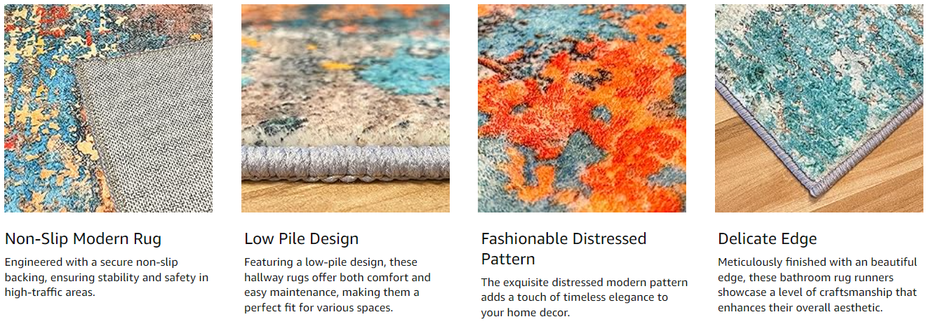 Easy-Care Rug- Our hallway runner non-slip is machine washable for your convenience. Toss them in the device for a quick wash, then air dry without heat. Daily cleaning is a breeze with a vacuum, broom, or wipe.